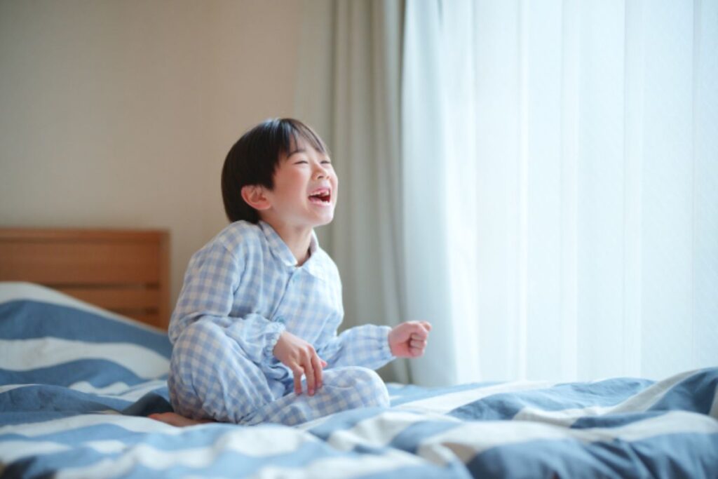 この「光・温度・音」の3つを先に整えておくと、子どもの頭と体が自然に「起きるモード」に切り替わっていきます。
